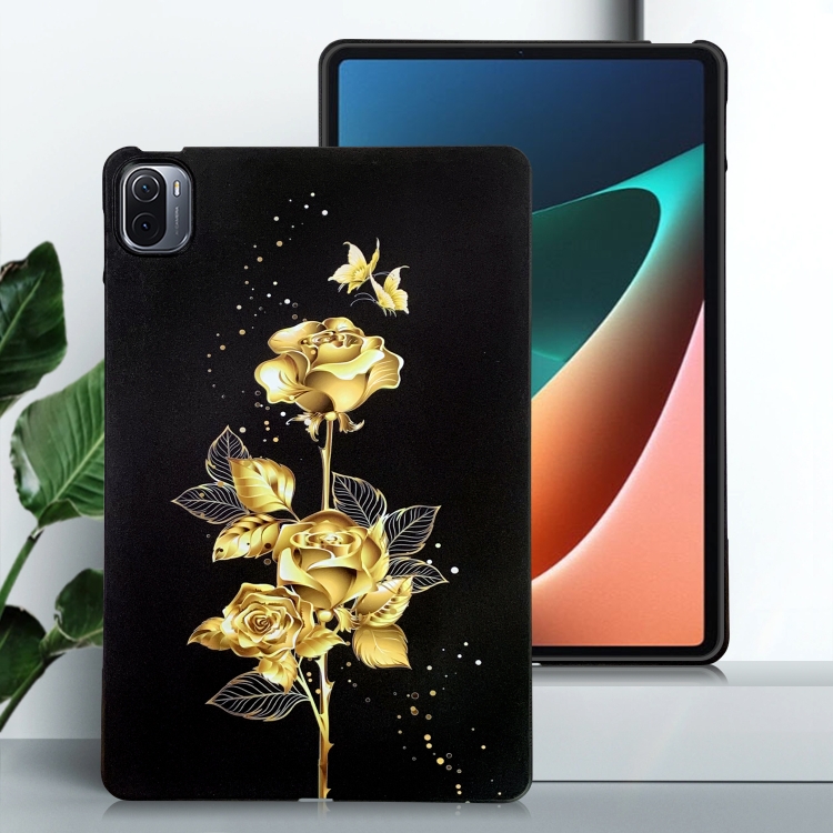 Funda de TPU con Patrón de Rosa Dorada para Tableta Inteligente Xiaomi Pad 5/Pad 5 Pro (Negra)