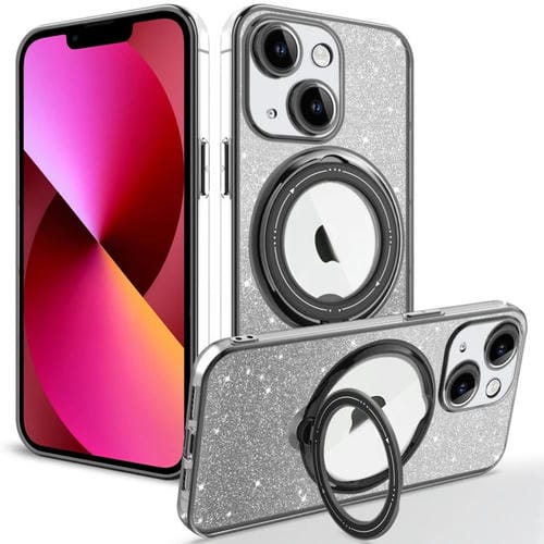 Funda TPU con Purpurina Degradada y Soporte Magsafe Giratorio para iPhone 13 (Negro)