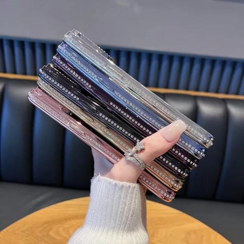 Funda de TPU con purpurina y degradado de agua con diamantes para iPhone 17 (plateada)