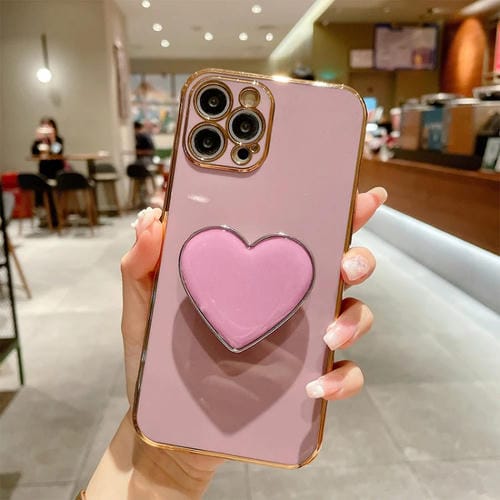 Funda TPU con Soporte Corazón de Amor y Galvanoplastia para iPhone 16 Pro Max (Morado)