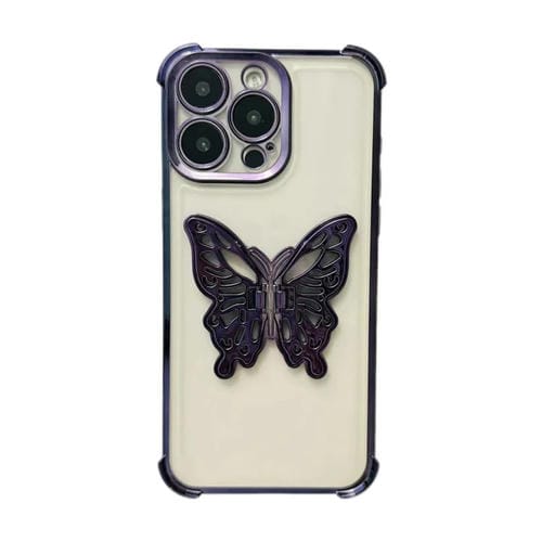 Funda TPU con Soporte Mariposa 3D Galvanizada para iPhone 16 Pro Max (Morado)