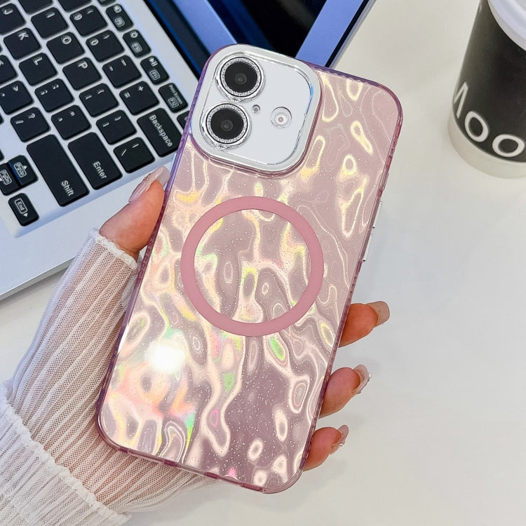 Funda TPU Magsafe Apple iPhone 16 Textura Chapada Película Lente Brillante (Arrugas Rosadas)