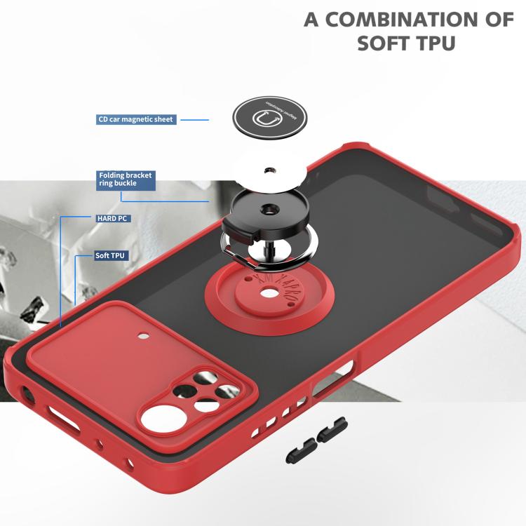 Funda de TPU + PC con anillo para Xiaomi Poco X4 Pro 5G Q Shadow 1 Series (roja)
