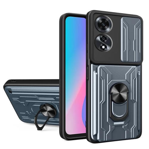 Funda Deslizante de TPU y PC con Ranura para Tarjetas para Oppo A60 4G (Gris)