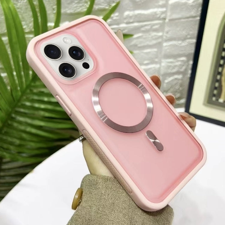 Funda híbrida de silicona acrílica Magsafe para iPhone 16 Pro Max (Rosa)