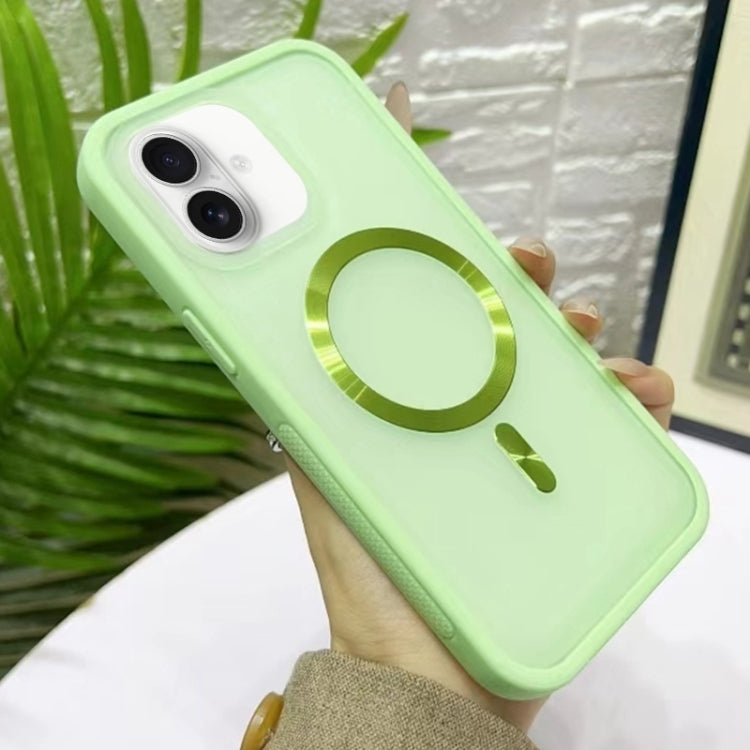 Funda híbrida de silicona acrílica Magsafe para iPhone 16 (Verde Claro)