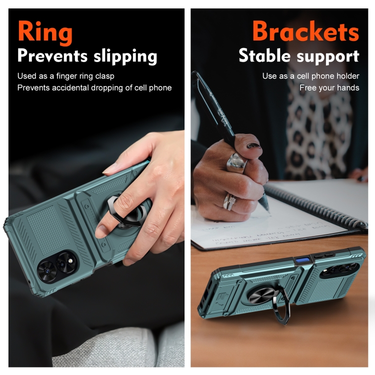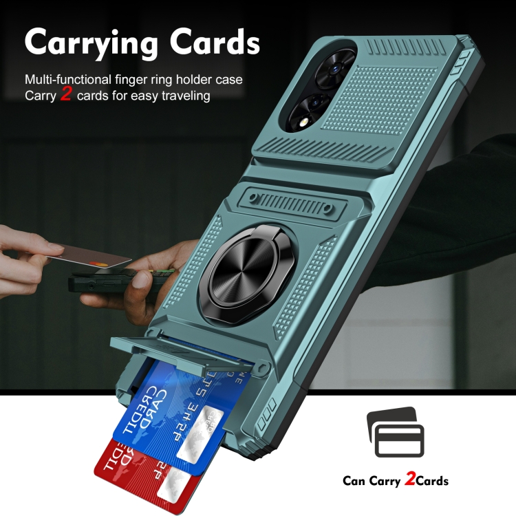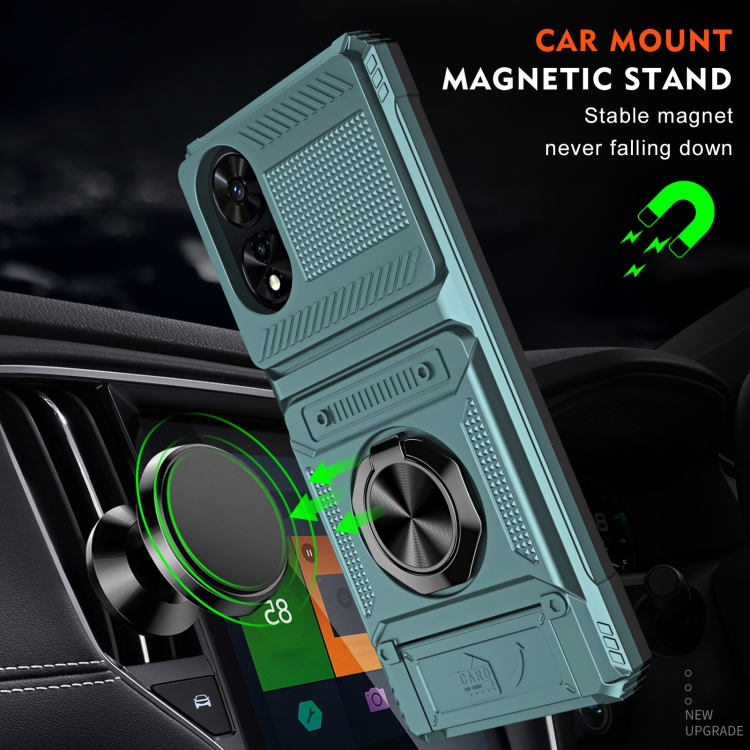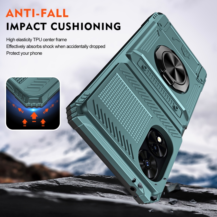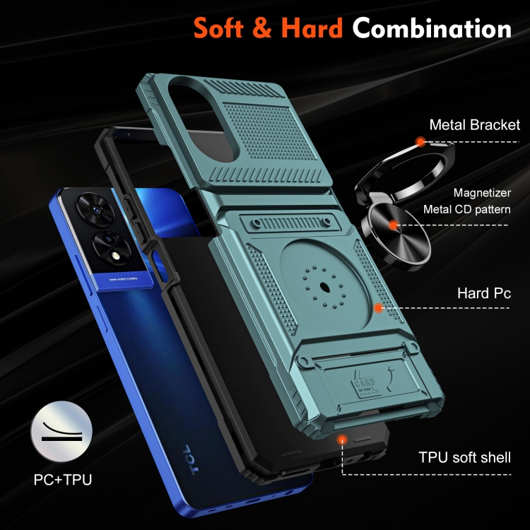 Funda híbrida TPU para TCL 50 Se 4G con soporte de anillo de metal (Verde)