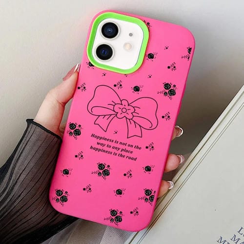 Funda Híbrida TPU para PC con Lazo Floral para iPhone 12/12 Pro (Rosa Rojo)