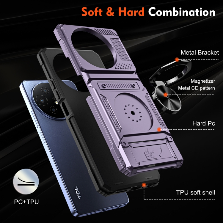Funda híbrida TPU PC para TCL 50 Xl 5G con soporte anillo (Morado)