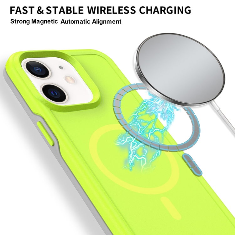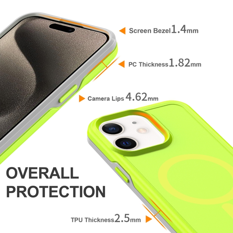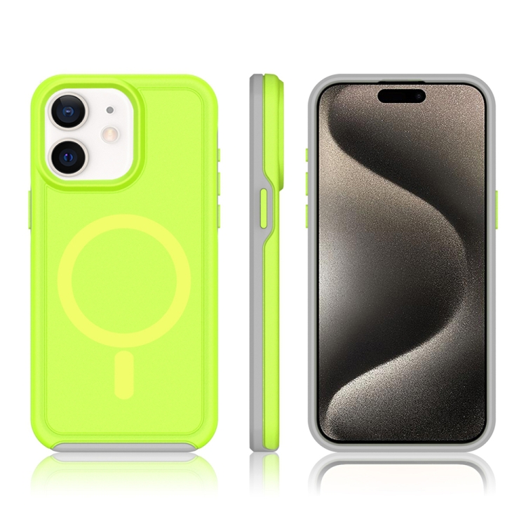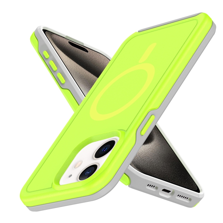 Funda híbrida TPU y PC para iPhone 11 con protección Magsafe y a prueba de golpes (Verde Fluorescente y Gris)