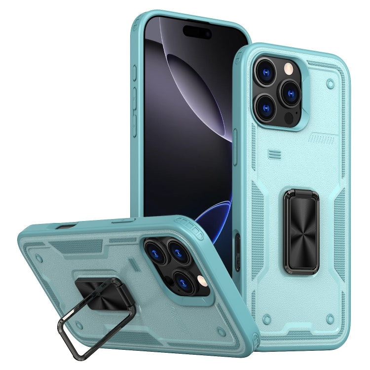 Funda híbrida TPU y PC con soporte para anillo iPhone 16 Pro (Azul)