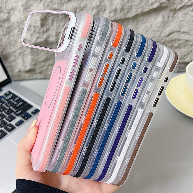 Funda híbrida de TPU y PC MagSafe para iPhone 17 Pro Max con soporte de lente galvanizado (blanco)