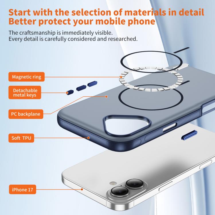 Funda híbrida de TPU y PC para iPhone 17, imitación MagSafe original, bicolor (azul)