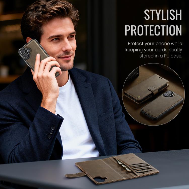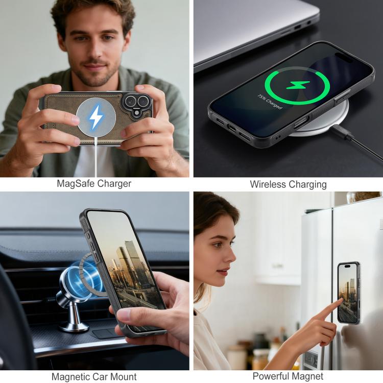 Funda magnética MagSafe AutSpace A05 2 en 1 con textura de piel de becerro retro para iPhone 17 (marrón)