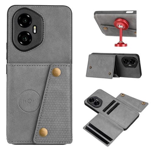 Funda Magnética para Honor 300 con Ranuras para Tarjetas y Doble Hebilla (Gris)