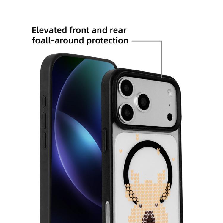 Funda magnética resistente con borde negro pintado de la serie navideña para iPhone 17 Pro Max (Ciervo de punto)