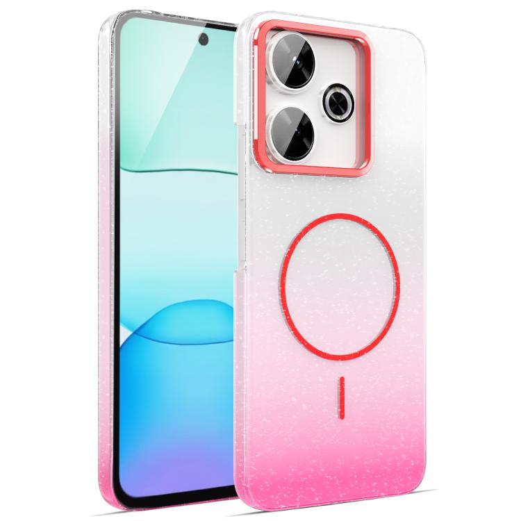 Funda MagSafe a prueba de golpes para Xiaomi Redmi 13 4G con purpurina dorada y degradado (roja)