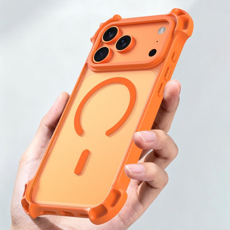 Funda MagSafe acrílica antigolpes de cuatro esquinas estilo dron para iPhone 17 Pro (naranja)