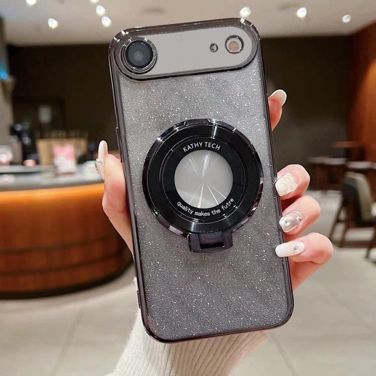Funda MagSafe con soporte galvanizado y purpurina degradada para iPhone Air (negra)