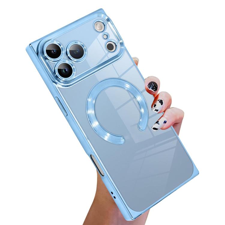 Funda MagSafe de TPU con patrón de CD electrochapado cuadrado en ángulo recto para iPhone 17 Pro Max (Azul Sierra)