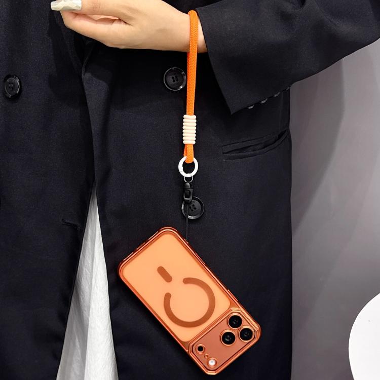 Funda MagSafe de TPU electrochapado mate con ventana grande para iPhone 17 Pro Max y correa de mano (dorada)