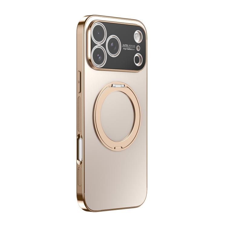 Funda MagSafe electrochapada con soporte giratorio de 360 grados para iPhone 17 Pro Max con cubierta para lente (Oro desierto)