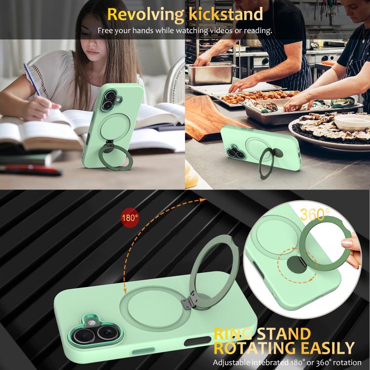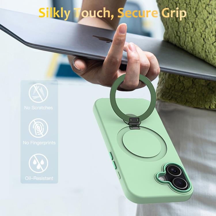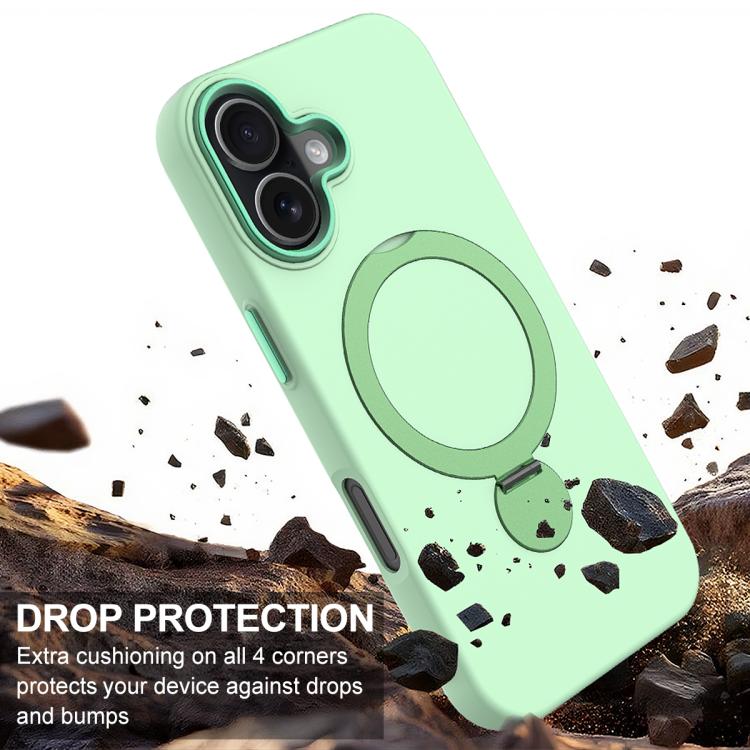 Funda MagSafe híbrida de TPU y PC para iPhone 17 Gen1.5 con soporte de anillo pivotante (verde)