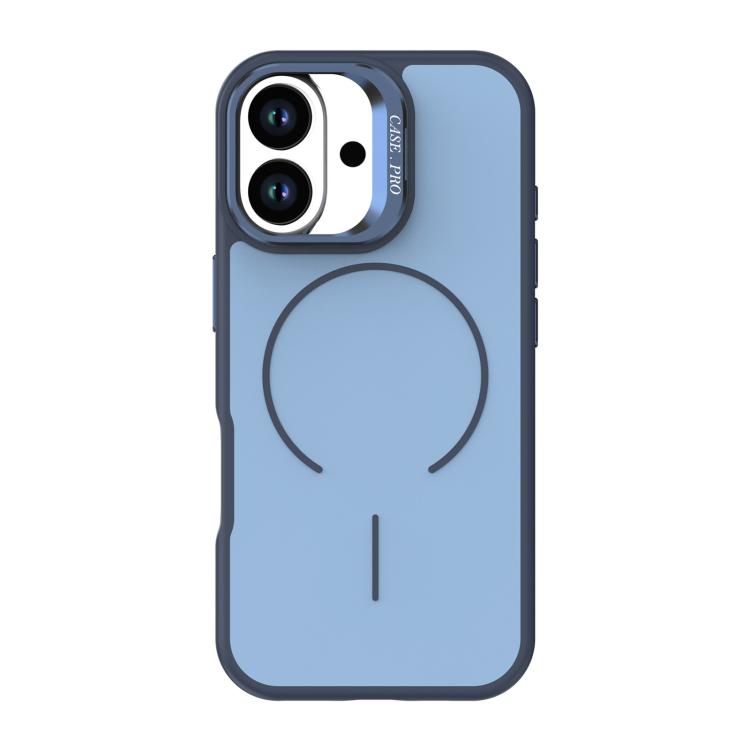 Funda Magsafe para iPhone 17 con soporte para cámara y tacto suave en contraste de colores brillantes (azul)