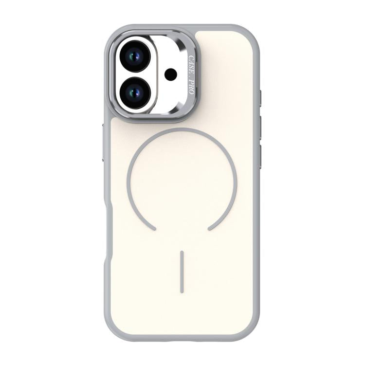 Funda Magsafe para iPhone 17 con soporte para cámara y tacto suave en contraste de colores brillantes (gris)