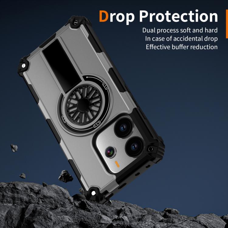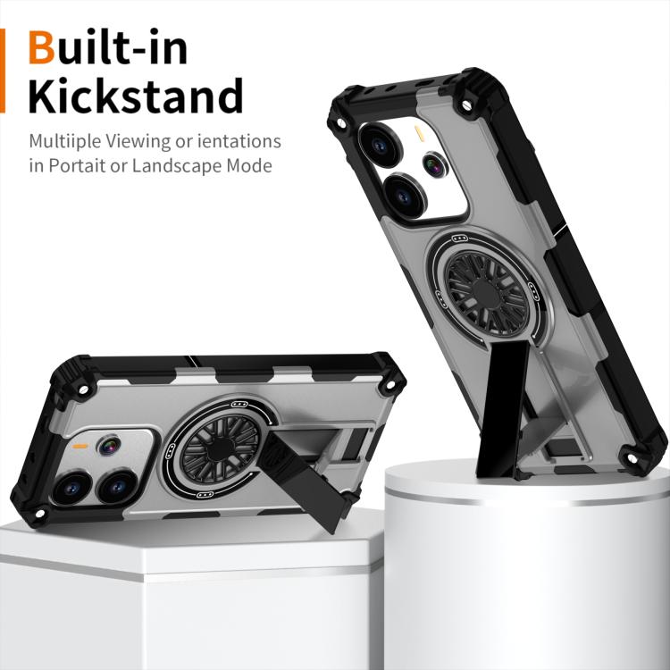 Funda MagSafe para Redmi Note 14 4G de 163,25 mm con soporte metálico y eje a prueba de golpes (plateada)
