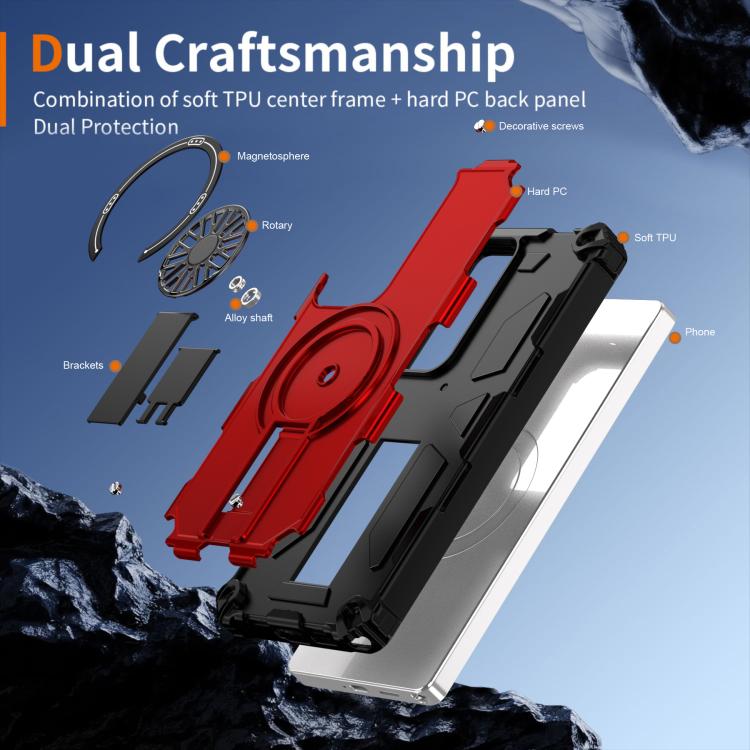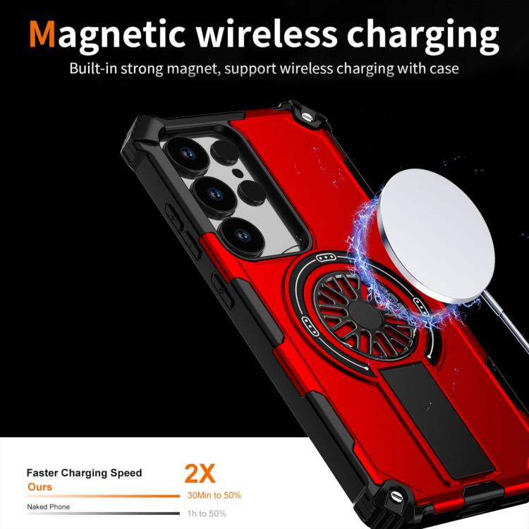 Funda MagSafe para Samsung Galaxy S24 Ultra 5G, a prueba de golpes, con soporte metálico y eje (rojo)