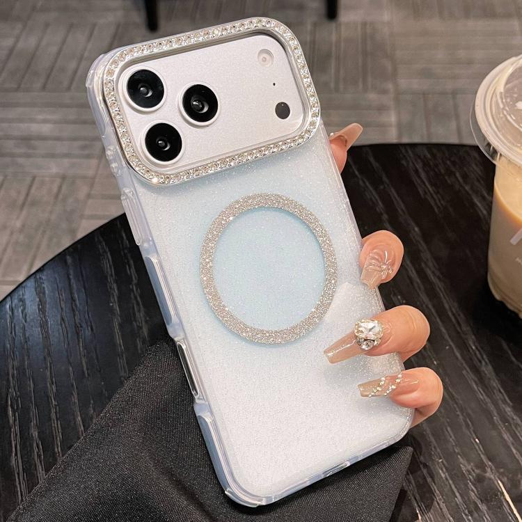 Funda MagSafe semitransparente con purpurina y bordes redondeados para iPhone 17 Pro Max (azul)