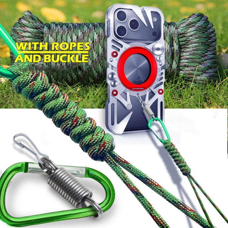 Funda metálica hueca MagSafe con soporte giratorio para iPhone 17 Pro con cordón (negra)