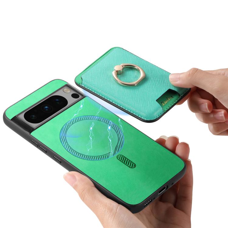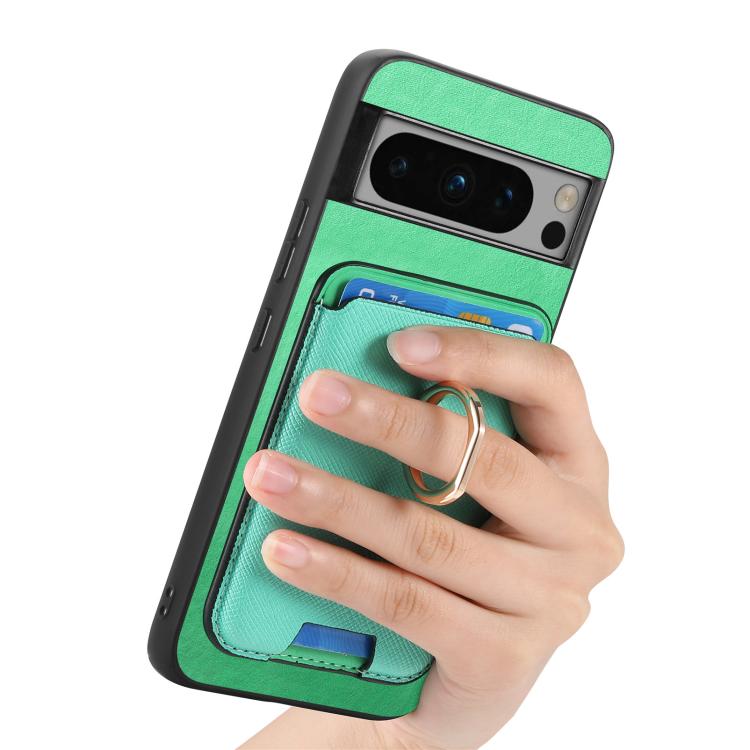 Funda para Google Pixel 8 Pro con Ranuras para Tarjetas y Anillo de Cuero (Verde)