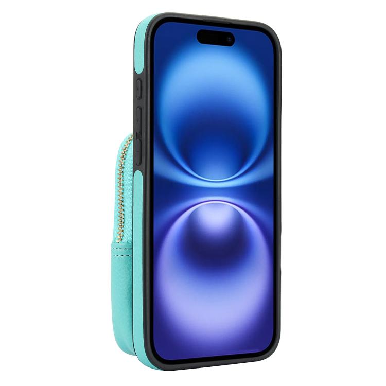 Funda para iPhone 16 Awquer con Cremallera y Bandolera de Piel de Lichi (Verde Menta)