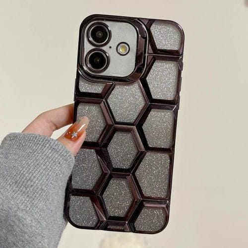 Funda para iPhone 16 Grabado Láser Galvanoplastia Purpurina Panal 3D (Negra)