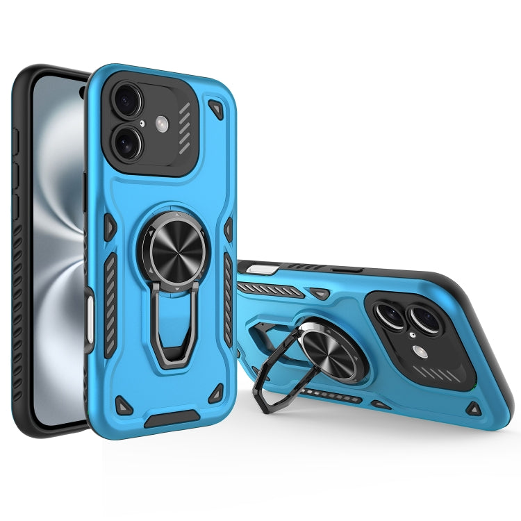 Funda para iPhone 16 con Soporte Giratorio de Metal y Carcasa Magnética de TPU y PC (Azul)