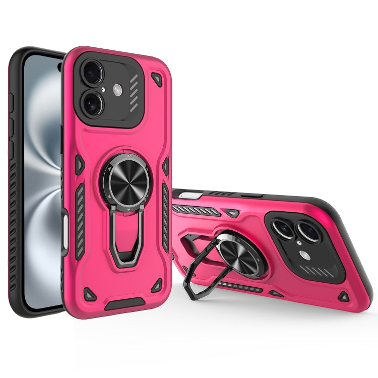Funda para iPhone 16 con Soporte Giratorio Metal y Carcasa Magnética TPU y PC (Rosa y Rojo)