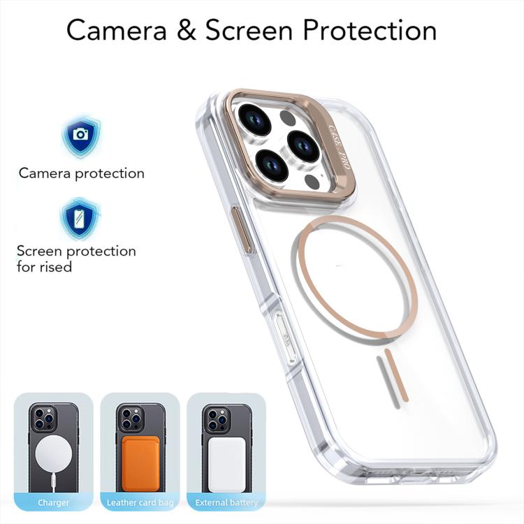 Funda para iPhone 16 Pro, color brillante, transparente, con marco de lente MagSafe (naranja)