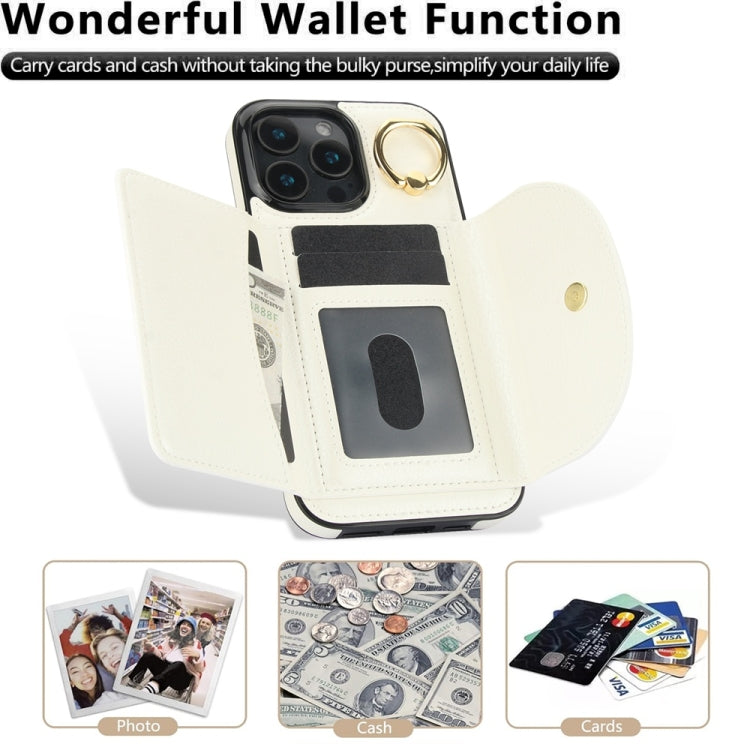Funda para iPhone 16 Pro Max Ym007 con Tarjetero y Anillo Tacto Suave (Blanca)