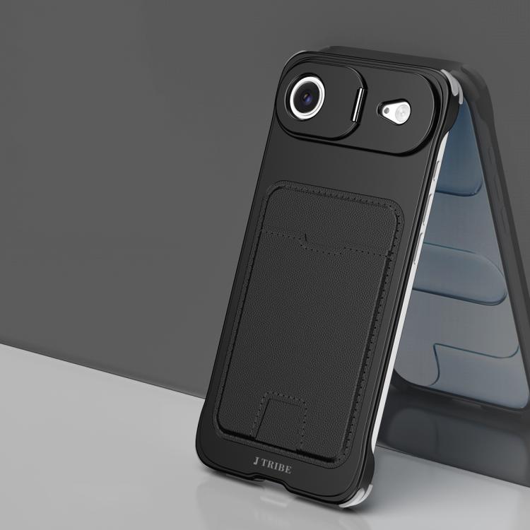 Funda para iPhone 17 Air J TRIBE de metal sin marco con ranura para tarjeta y soporte para lente (negra)