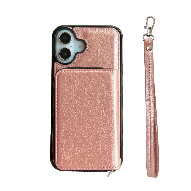 Funda para iPhone 17 con cremallera, ranuras para 11 tarjetas y cordón (oro rosa)