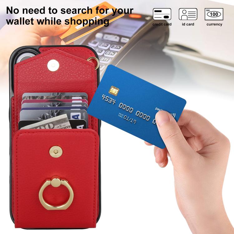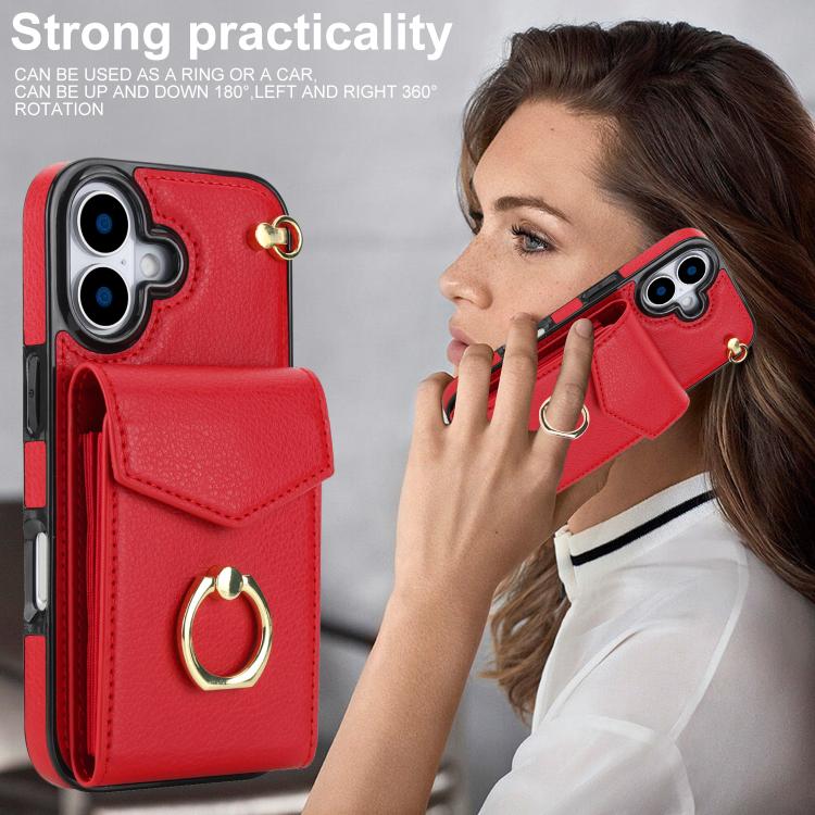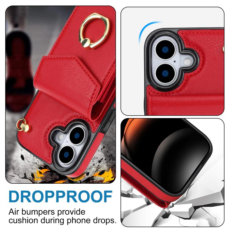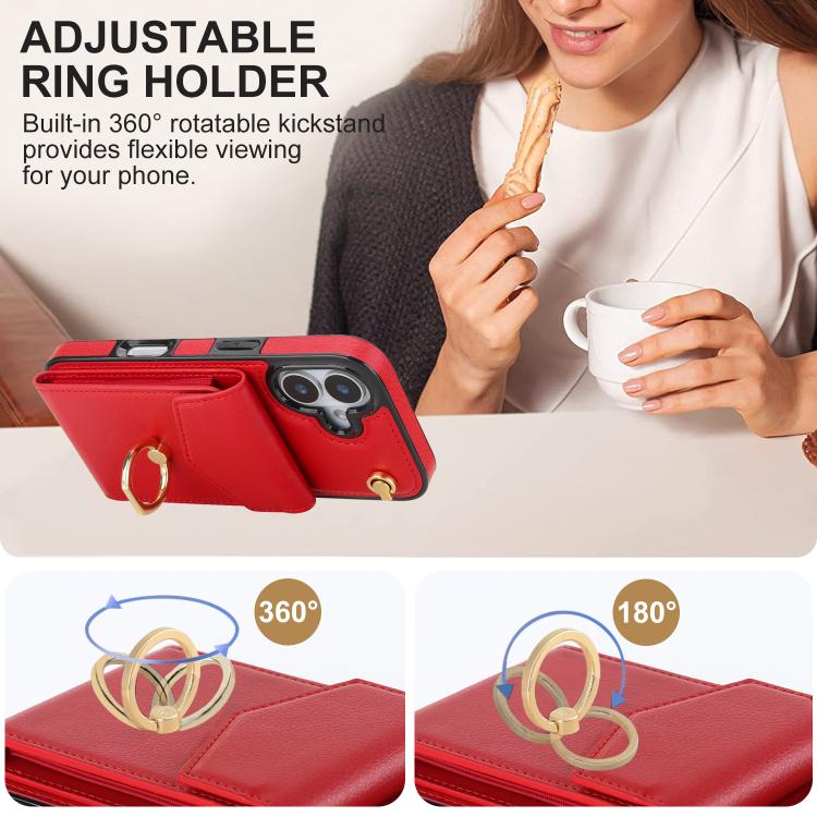Funda para iPhone 17 con ranura para tarjeta RFID y soporte de anillo (roja)