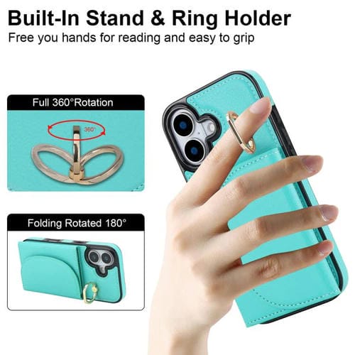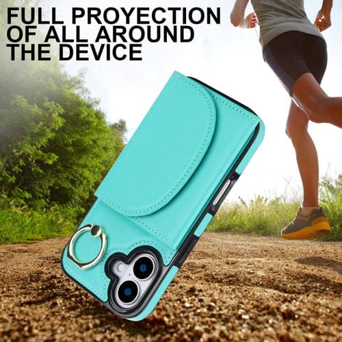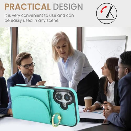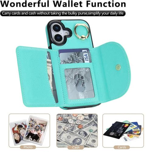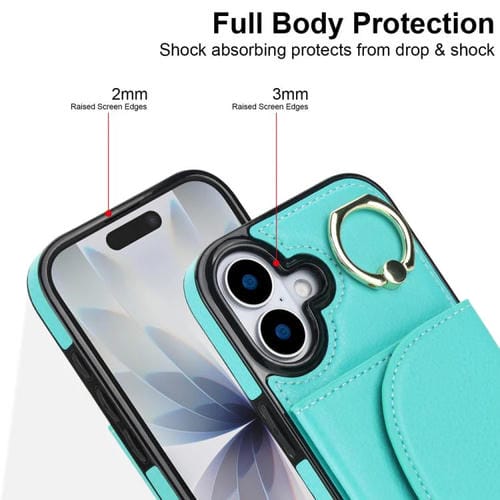 Funda para iPhone 17 con tarjetero y anillo, tacto suave (verde)