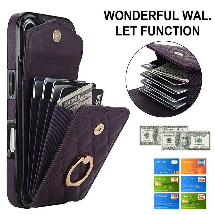 Funda para iPhone 17 con textura rómbica y cordón largo (morado oscuro)