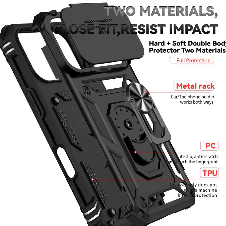 Funda para iPhone 17 Pro con soporte deslizante tipo cámara (negra)