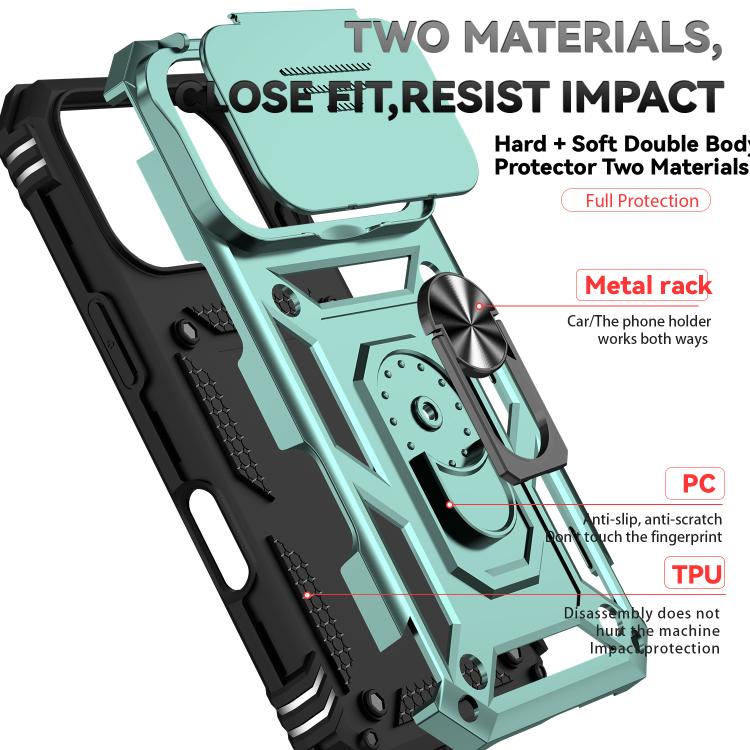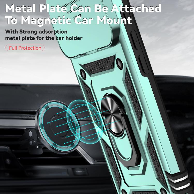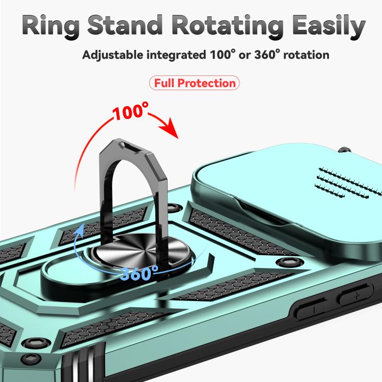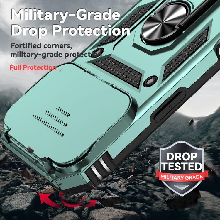 Funda para iPhone 17 Pro con soporte deslizante tipo cámara (verde oscuro)