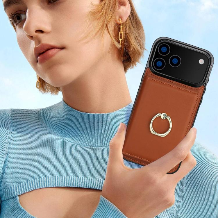 Funda para iPhone 17 Pro Max con anillo antirrobo RFID (marrón)