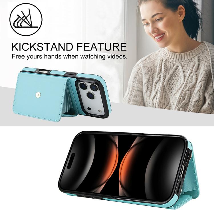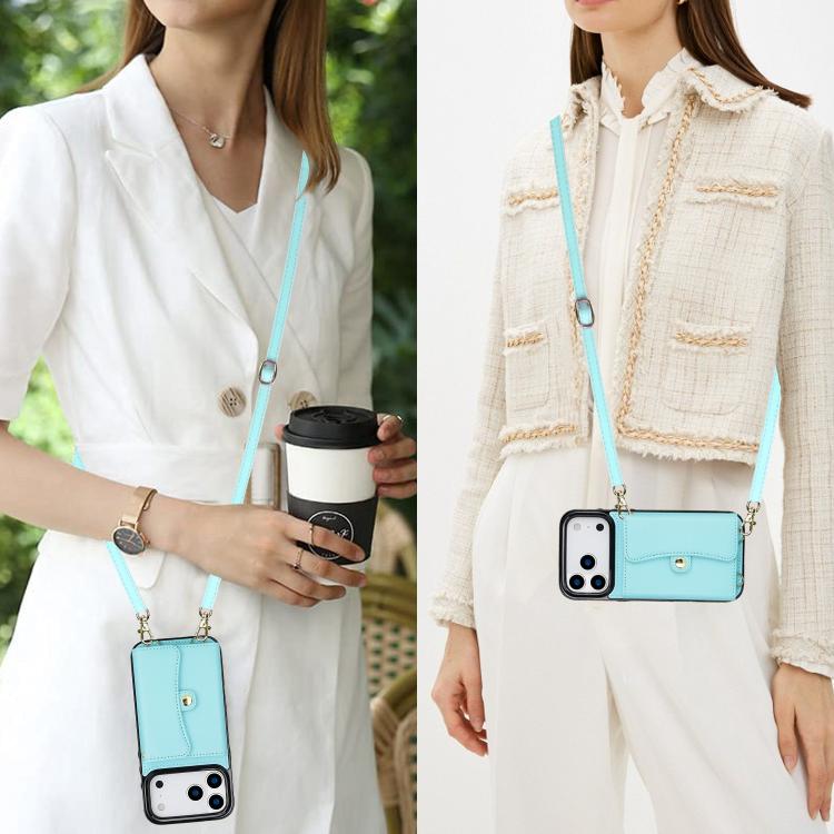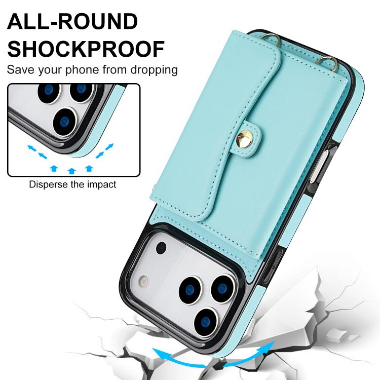 Funda para iPhone 17 Pro Max con ranura para tarjeta RFID y cordón largo (verde menta)