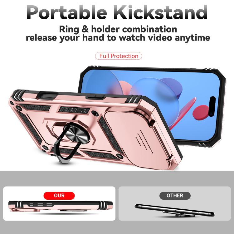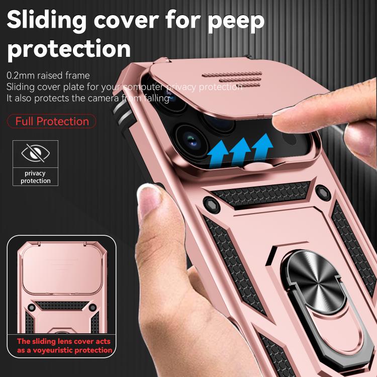 Funda para iPhone 17 Pro Max con soporte deslizante Camshield (Oro rosa)